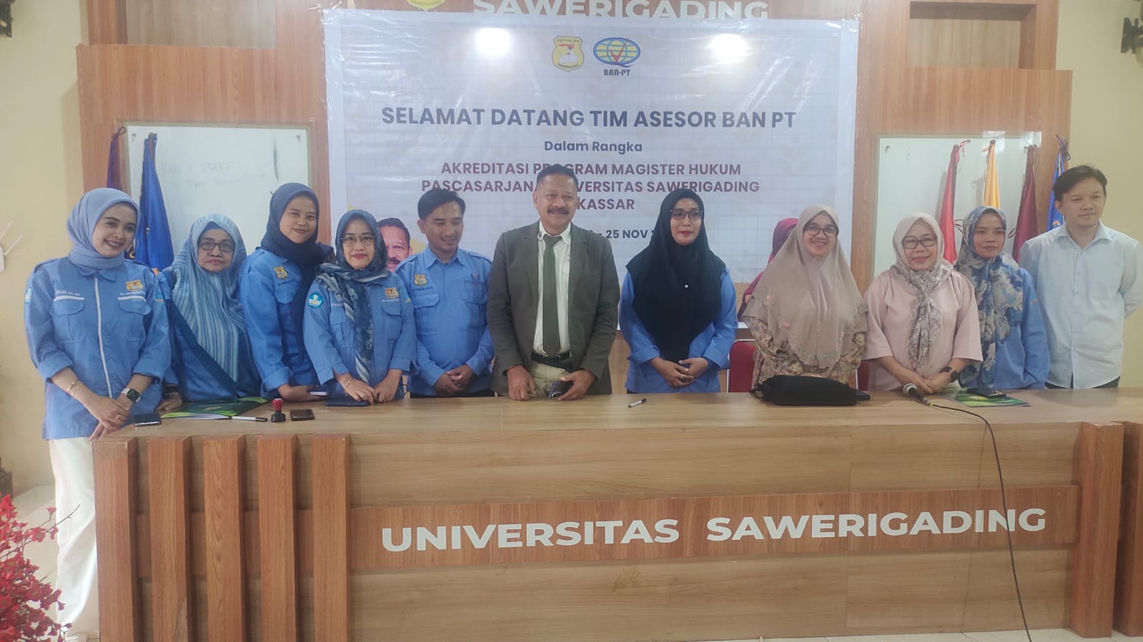 MAKASSAR, UPDATENEWS — Pascasarjana Universitas Sawerigading (Unsa) Makassar menyelenggarakan kegiatan penyambutan Tim Asesor Badan Akreditasi Nasional Perguruan Tinggi (BAN-PT) dalam rangka asesmen lapangan Program Studi Magister Hukum.
