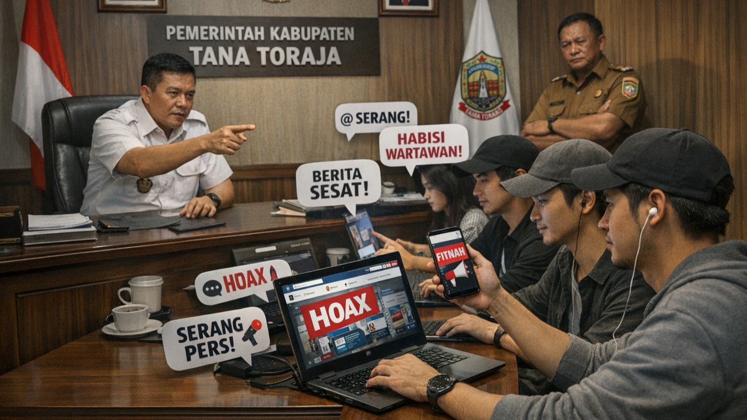 TATOR, UPDATENEWS – Kritik terhadap sejumlah proyek pemerintah yang dinilai bermasalah di Kabupaten Tana Toraja justru berujung pada serangan personal terhadap wartawan. Sejumlah akun media sosial yang berperan sebagai buzzer dan diduga terkait dengan Pemerintah Daerah (Pemda) Tana Toraja menuding wartawan melakukan ancaman dan pemerasan terhadap kontraktor proyek.
