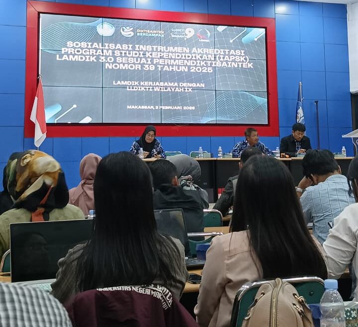 MAKASSAR, UPDATENEWS– Perwakilan Universitas Sawerigading (UNSA) turut berpartisipasi aktif dalam kegiatan Sosialisasi Instrumen Akreditasi Program Studi Kependidikan (IAPSK) LAMDIK 3.0 yang diselenggarakan oleh Lembaga Akreditasi Mandiri Kependidikan (LAMDIK) di Aula Kantor LLDIKTI Wilayah IX, Jalan Bung KM. 9 Tamalanrea, Makassar, pada Selasa (3/2/2026).