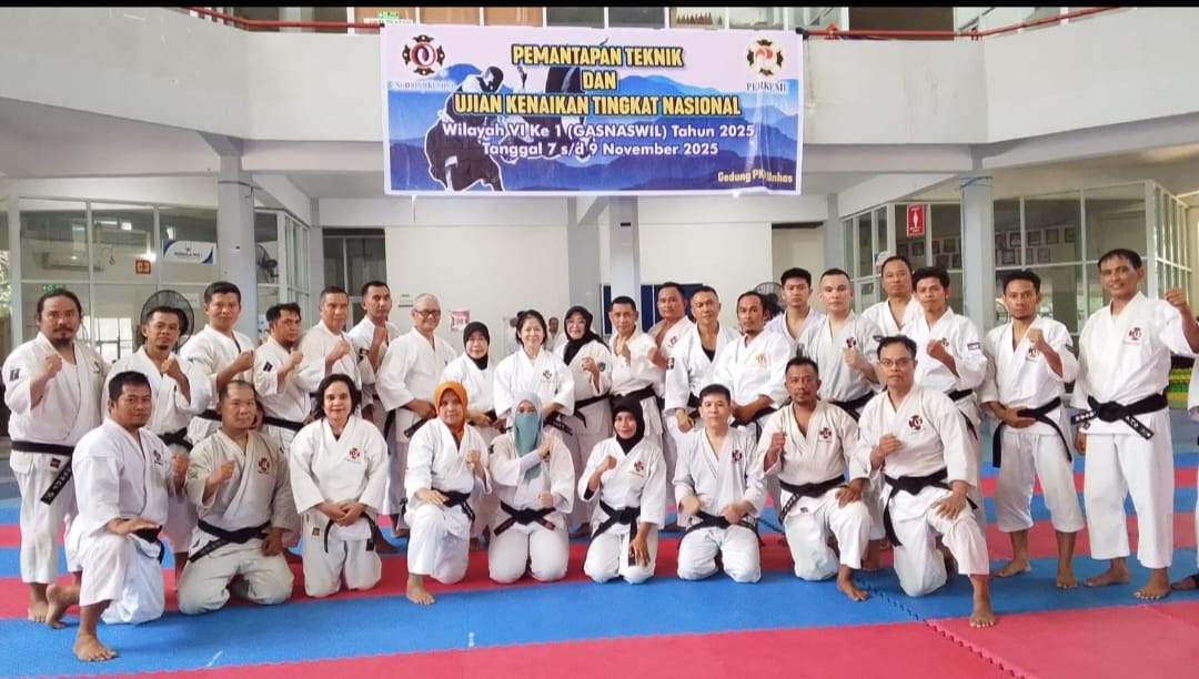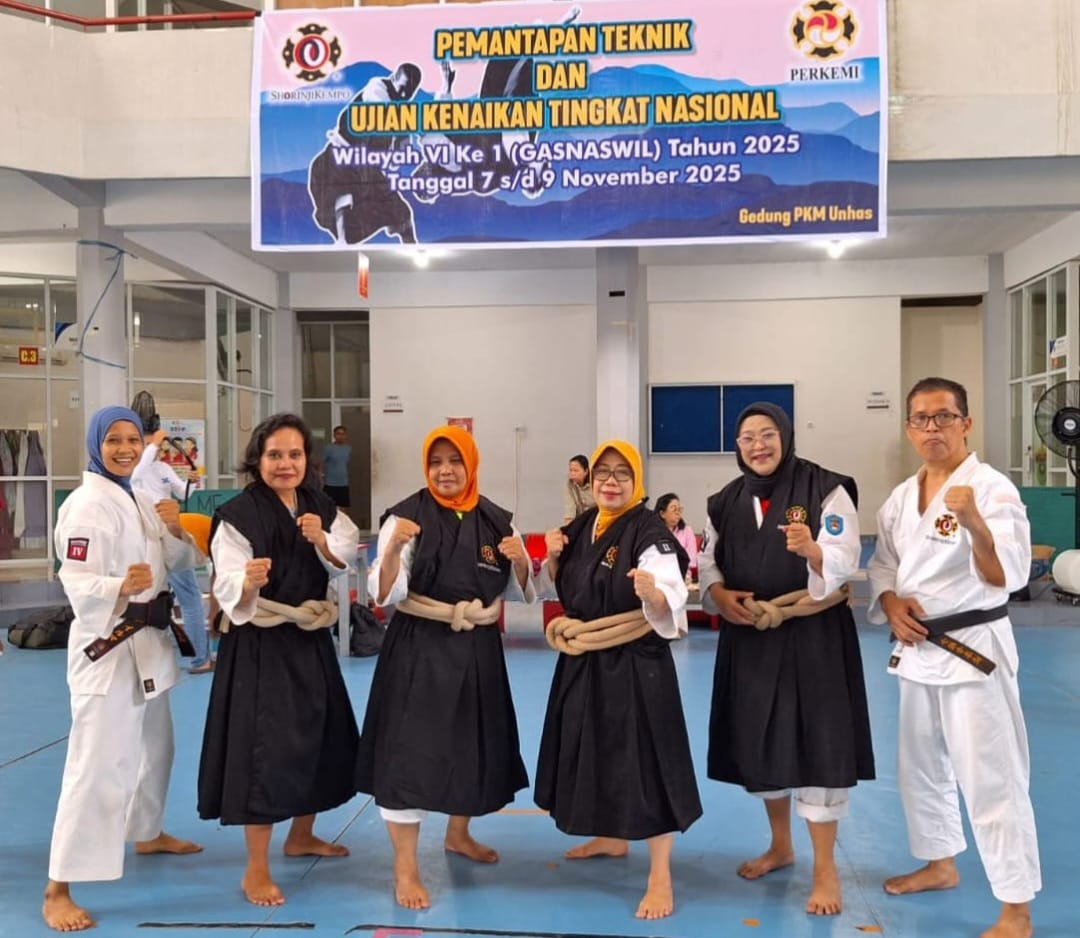 MAKASSAR,UPDATENEWS– Rektor Universitas Sawerigading (UNSA) Makassar, Prof. Dr. A. Melantik Rompegading, SH., MH., turut berpartisipasi dalam Gashuku Nasional Pemantapan Teknik dan Ujian Kenaikan Tingkat Nasional Shorinji Kempo Wilayah VI, yang berlangsung selama tiga hari, mulai 7 hingga 9 November 2025 di Pusat Kegiatan Mahasiswa (PKM) Universitas Hasanuddin (Unhas) Makassar.